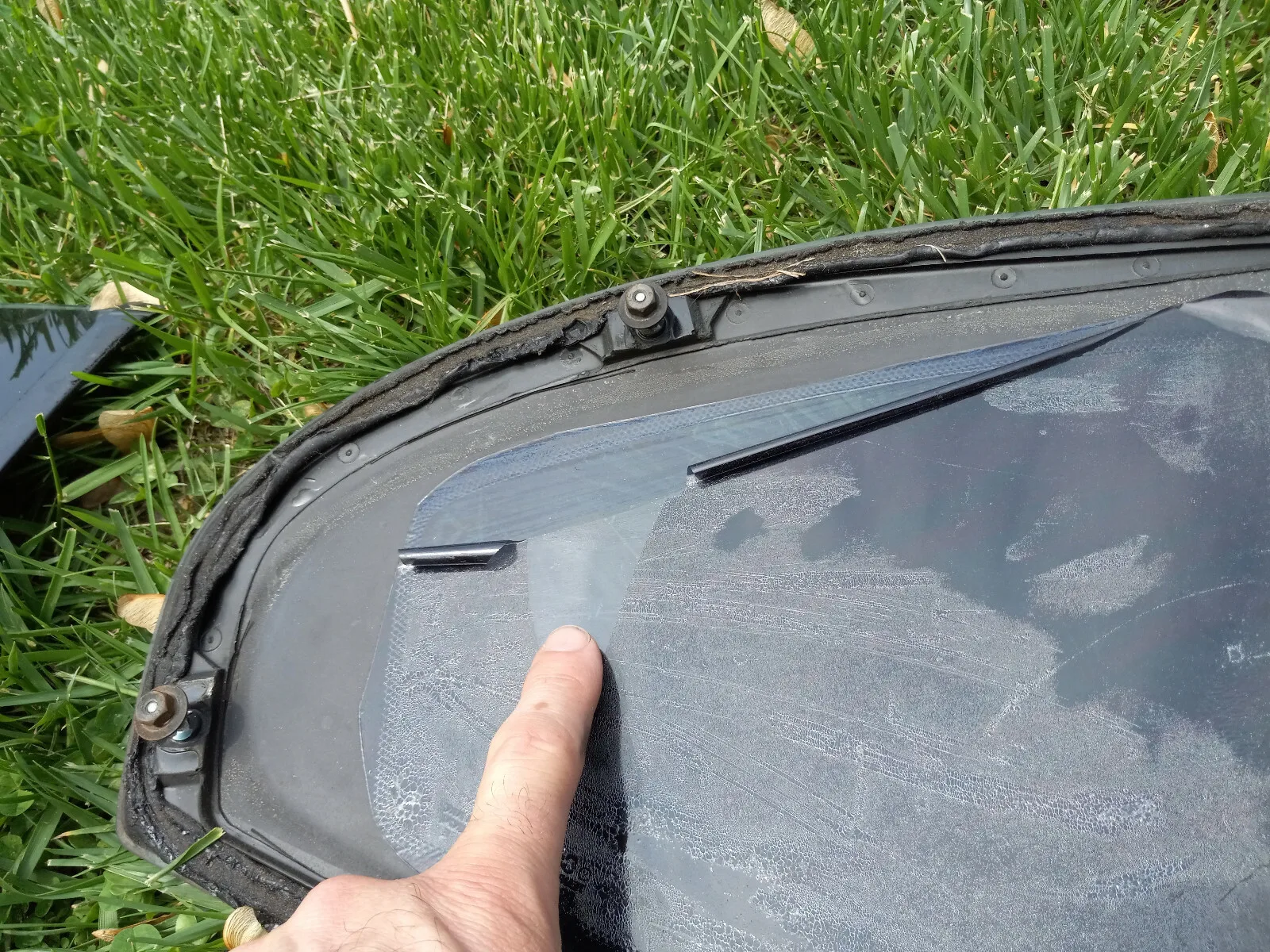 The rear windows have old window tint that needs removed and the side panels need repainted but are in good shape. SEE PICS